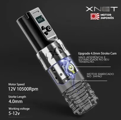 Maquina tatuagem xnet tattoo pen motor japonês 2x baterias A nova xnet torch tattoo pen é o lançamento mais recente da marca e vem equipada com um motor japonês de alta qualidade e baixo ruido, garantindo precisão e suavidade na aplicação da tatuagem. Com desing elegante e compacto possui duas baterias de carregamento rápido e longa duração entre 6h a 8h de trabalho para garantir que você possa trabalhar sem interrupções, ajudando os tatuadores a melhorar suas habilidades e produzir tatuagens de alta qualidade. A nova xnet tattoo pen também vem com conexão wireless para monitorar o tempo trabalhado e duração da bateria, assim conseguindo calcular exatamente o tempo gasto em cada trabalho. Caracteristicas da máquina xnet torch pen tattoo wireless Modelo: xnet torch Fabricante do motor: motor japonês Velocidade do motor: 10500rpmTela: lcdEspessura da maquina: 4.0mm Cor: preto/prata Tensão de trabalho: 4.5-12v Capacidade da bateria: 2100 mah Tempo de trabalho da bateria: 5-7 horas Tempo de carregamento: cerca de 2 horas Interface de carregamento da bateria: tipo c Mais curiosidades Material da máquina: máquina é feita da liga de alumínio com técnologia cnc para precisão e perfeição da precisão, fácil desmontar, fácil manutenção e reparo. O kit inclui um pacote para reparo. Maquina também conta com sua precisão para todos os tipos de trabalhos, desde traços finos e delicados a preenchimentos de grandes trabalhos. Está máquina de tatuagem profissional possui um avançado sistema de acionamento direto, suave, preciso, macio e operação silenciosa. O que compõem o kit da maquina 1x – maquina tattoo pen xnet torch wireless 2x – baterias de 2100mah 1x – conector rca para emergência 1x – kit reparo 1x – case para guardar o equipamento